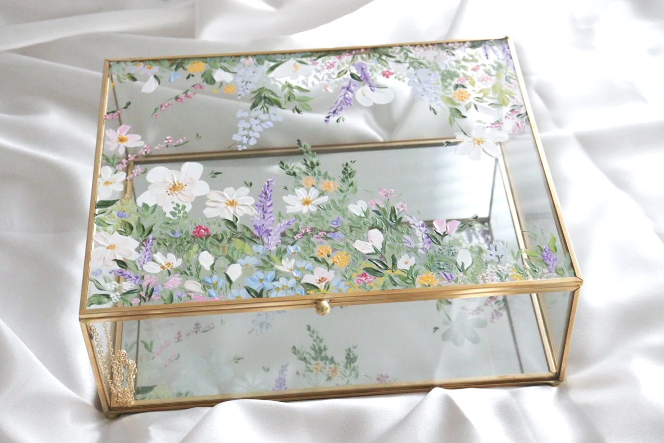 Custom paintings and personalized gifts such as hand-painted glass boxes, luxury accessories, and unique product designs. Each commission is tailored for private clients, corporate gifting, and brand collaborations, offering exclusive artistry that reflects your needs.